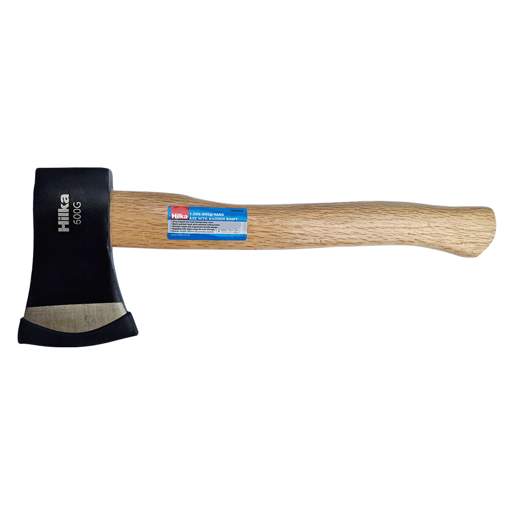 Από σφυρήλατο χάλυβα με ισχυρή λαβή από σκληρό ξύλο και πλαστικό προστατευτικό λεπίδας.